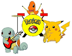 This is a picture of Squirtle, Picachu, and Charmander in the Poke' Band! They are playing the Poke'mon T.V. show theme song.
